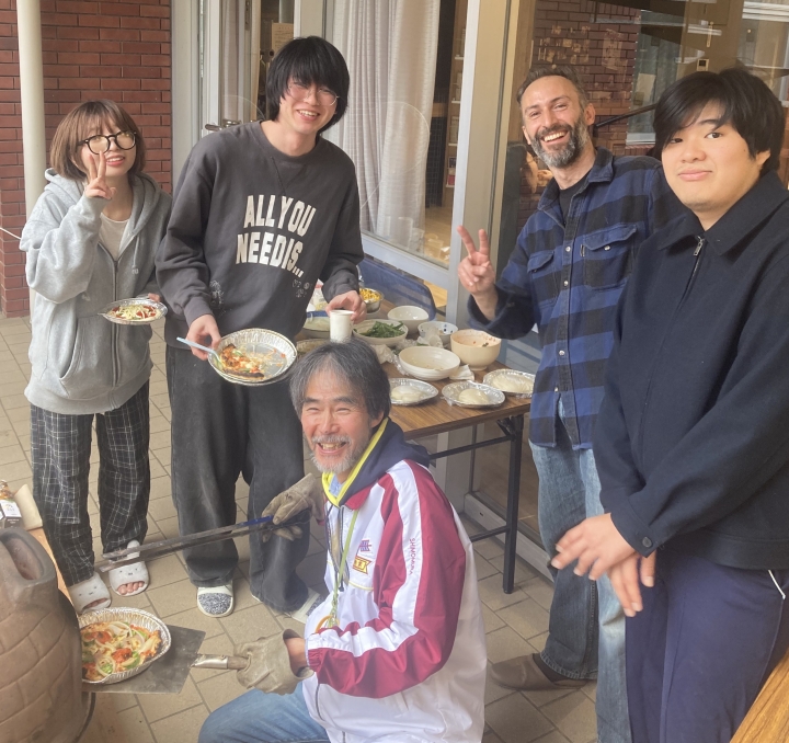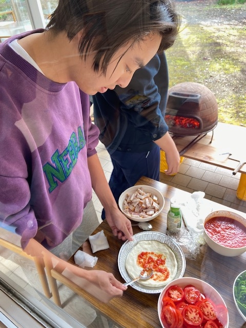 アレックス先生のご自宅のピザ釜をお借りして寮の中庭で焼きました。