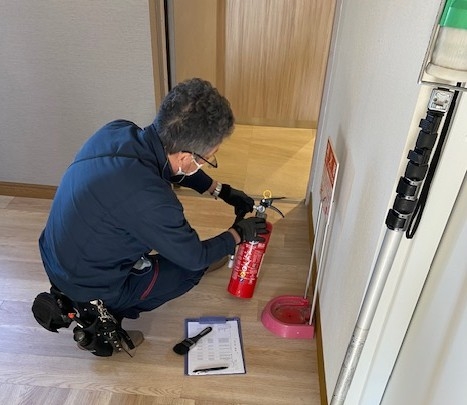 火災報知器や消火器、防火シャッター等の作動が正常か、点検がありました。