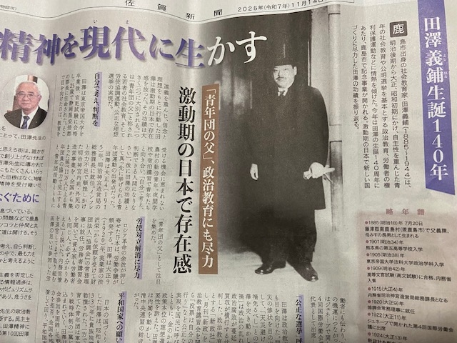 石碑に描かれた田澤先生のお顔はとても柔和な面持ちで、官僚や政治家としてよりも青年教育家・政治教育家としての生涯を貫かれた先生の意思が伝わってくるような気がしました。