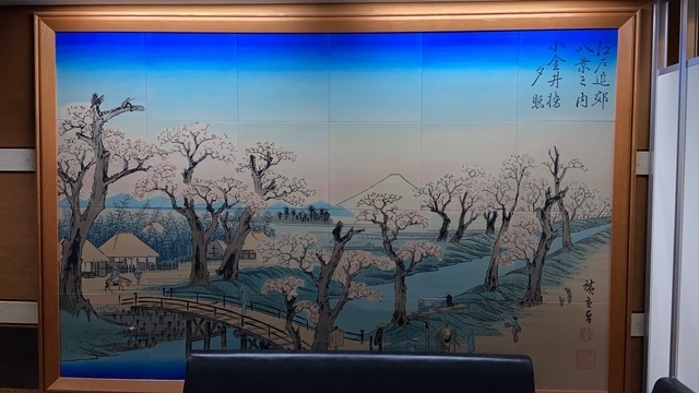 そういえば、小金井市体育館の2階には歌川広重の描いた『小金井橋夕照』の石板があります。